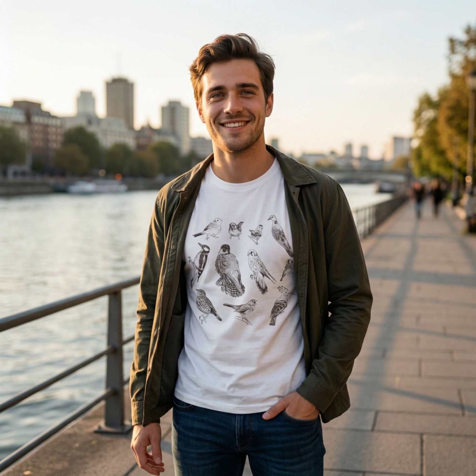 With a smooth, breathable fabric (155 g/m²), this tee keeps you comfortable during long walks, early-morning birdwatching sessions, and everyday adventures, whether you're out spotting warblers or relaxing on the couch watching them from your window.